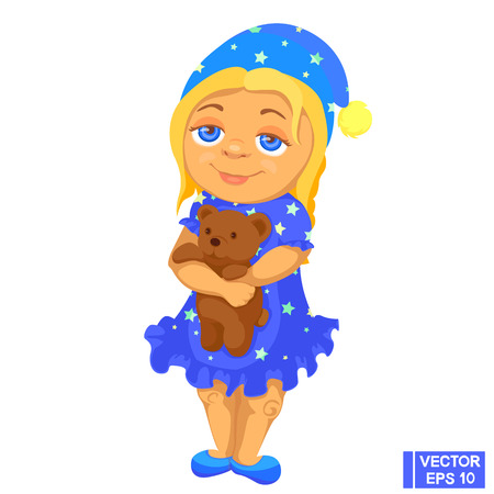 パジャマ姿で眠そうな少女 枕のかわいい漫画の女の子 イラスト のイラスト素材 ベクタ Image